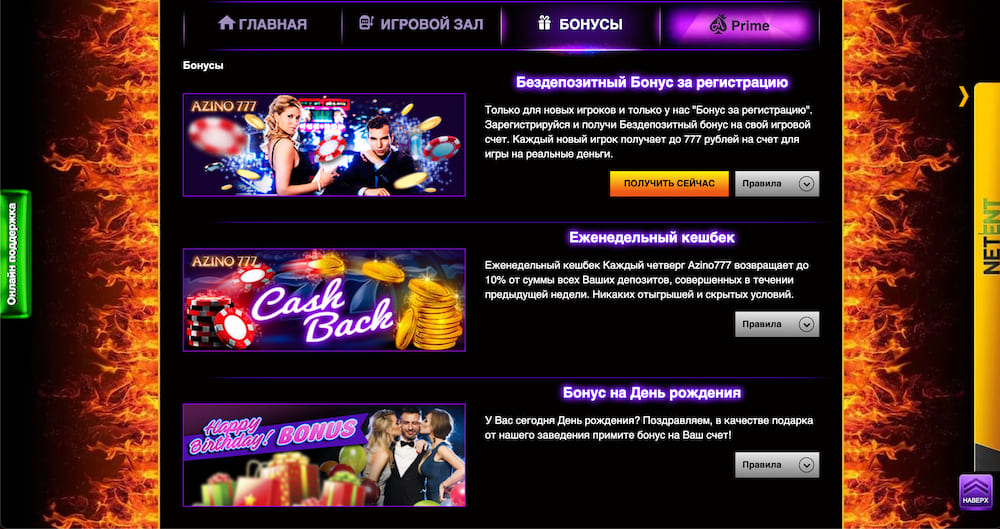 Выбирая игровой ресурс, многие новички обращают внимание не только на наличие лицензии, отзывы игроков, количество игровых автоматов, но и насыщенность бонусной программы. Аналогичного подхода придерживаются и опытные игроки, которые знают, что дополнительные поощрения заметно повышают шансы на успех. Это прекрасно понимают в компании Azino 777, предлагая своим клиентам такие виды бонусов: